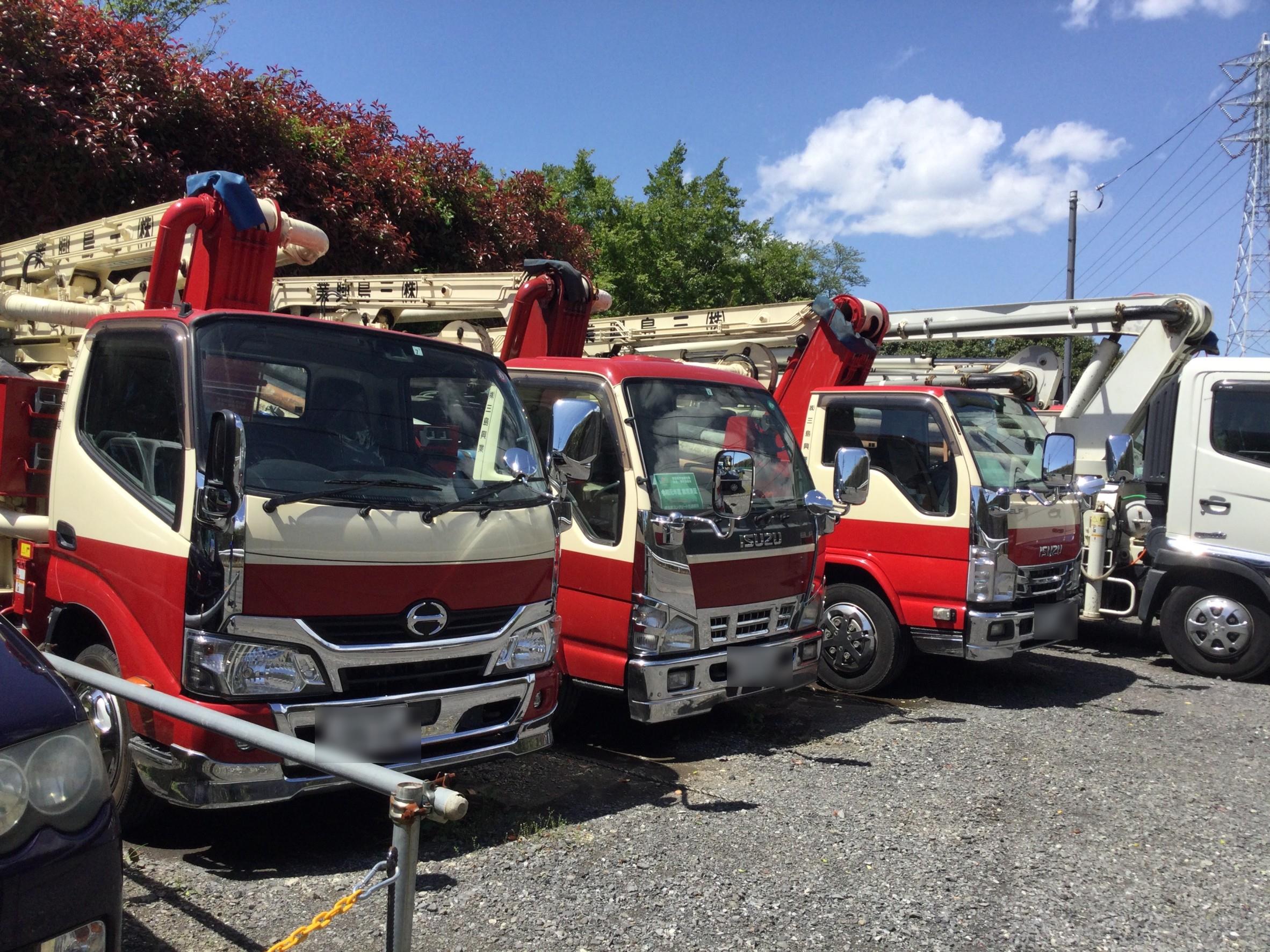 弊社の大切なコンクリートポンプ車たちの置き場です。